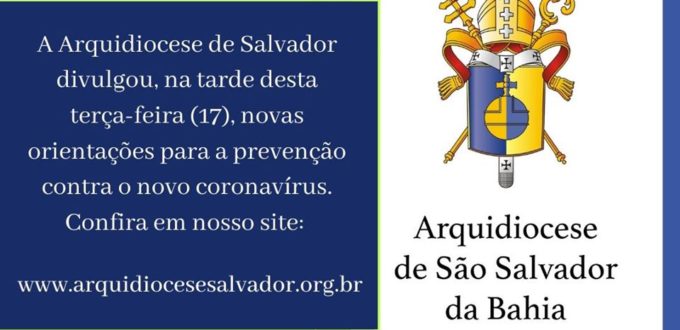 Arquidiocese de Salvador divulga novas orientações aos fiéis para a prevenção contra o novo coronaví